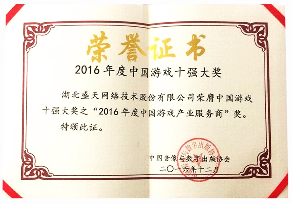2016年度中國游戲十強(qiáng)