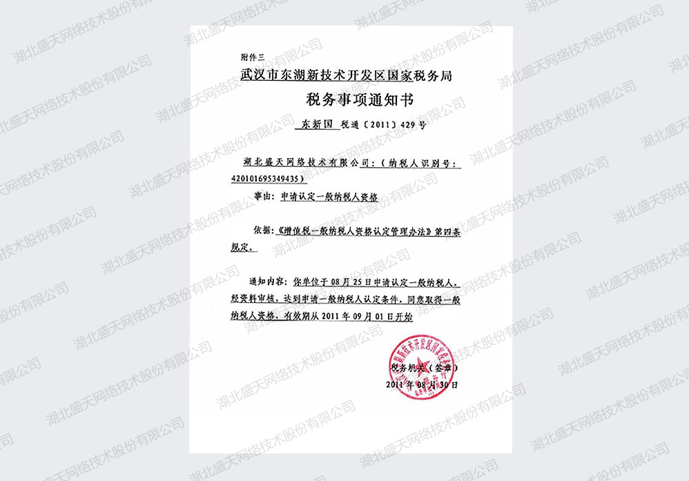 稅務(wù)事項(xiàng)通知書