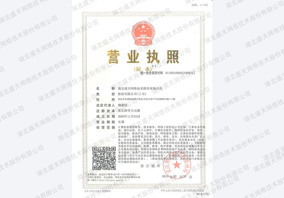 盛天網(wǎng)絡(luò)營業(yè)執(zhí)照